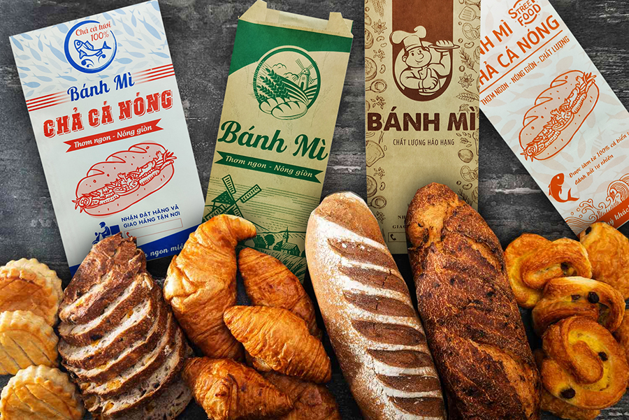 Sản xuất các loại bao bì giấy thực phẩm như túi bánh mì truyền thống, bánh mì que, hamburger,...
